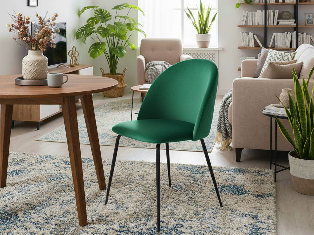 Krzesło tapicerowane do jadalni TM49 zielone welurowe metalowe nogi