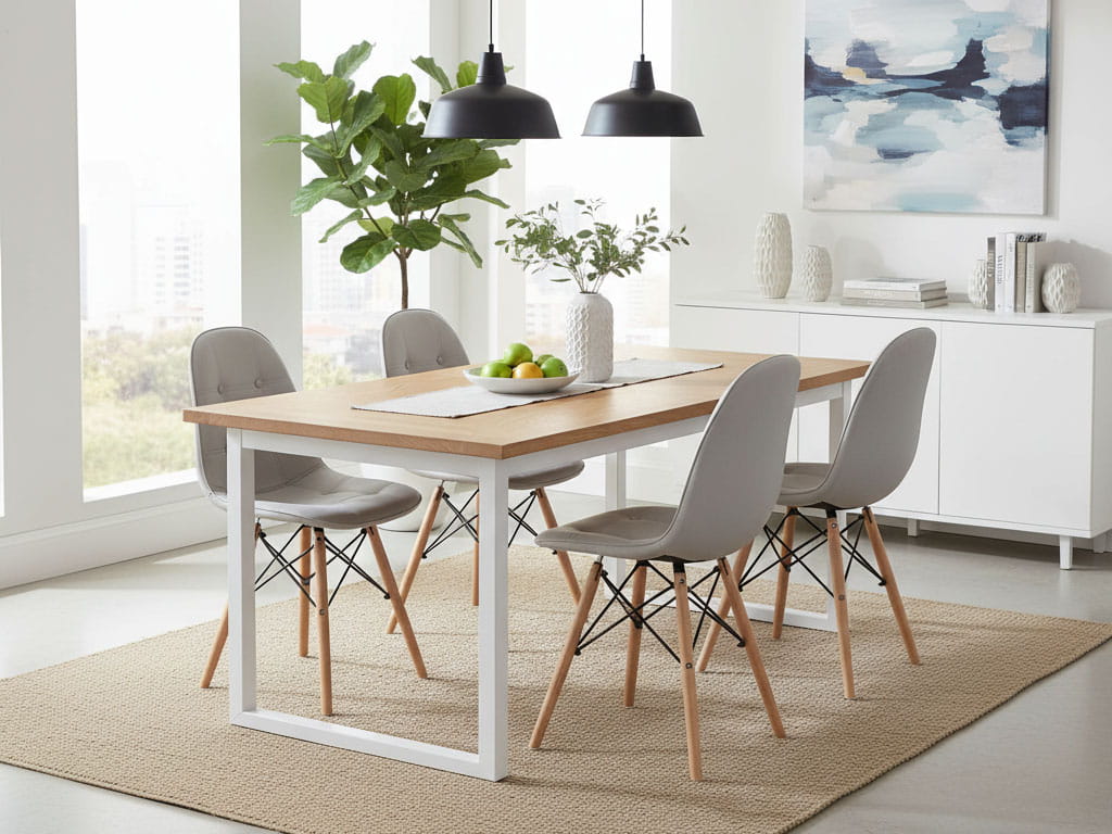 Stabilną podstawą naszego krzesła są cztery piękne drewniane nogi w kolorze jasnego buku, uzupełnione o czarne pałąki. Ta nowoczesna budowa z praktycznej podstawy staje się również przykuwającym wzrok elementem dekoracyjnym.