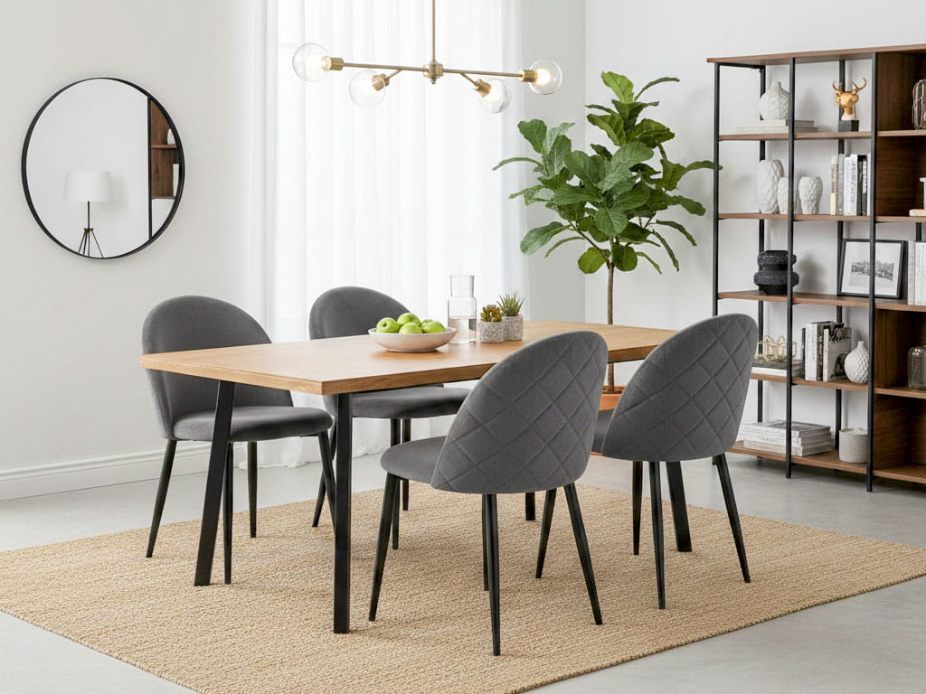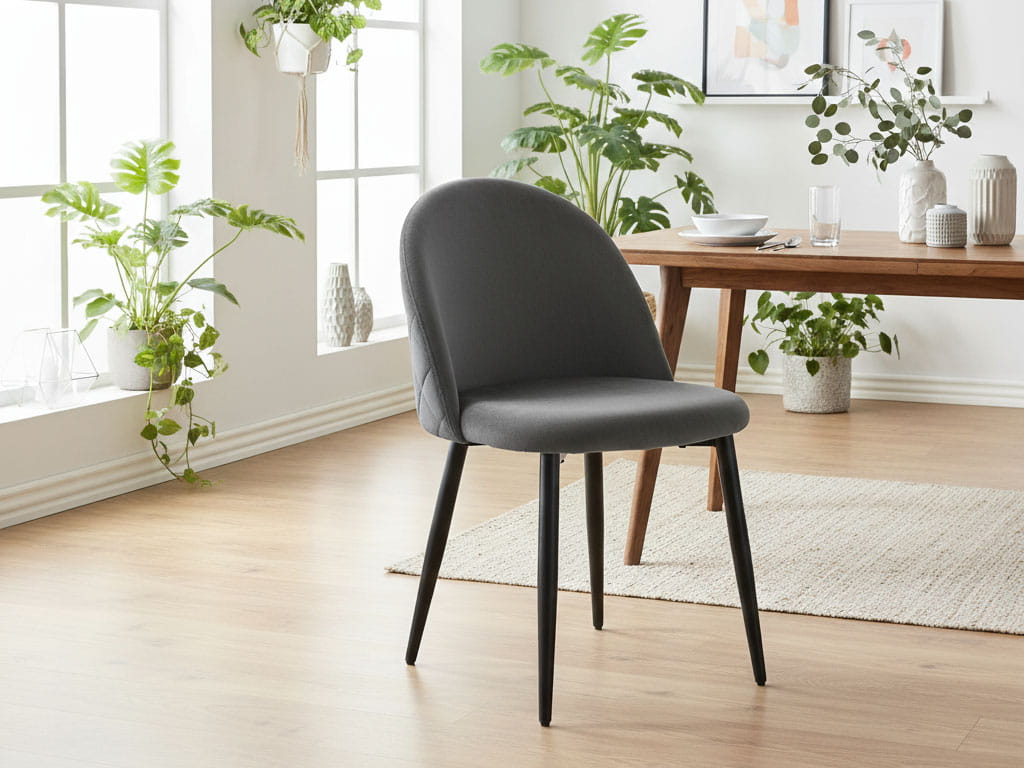 Kluczową rolę w kreowaniu charakteru krzesła TM92 odgrywa zaokrąglony korpus obity eleganckim welurem o szarym kolorze oraz urokliwe wzory małych rombów na tyle oparcia, stworzone za pomocą przeszyć delikatną, szarą nitką. Ten estetyczny zabieg sprawia, że wygodne siedzisko do spędzania na nim nawet długich godzin staję się tak niepowtarzalne, łącząc w sobie komfort i wyrafinowanie.