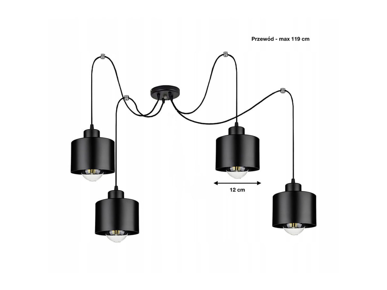 Prezentujemy niezwykle oryginalną lampę wiszącą z czterema, metalowymi kloszami, która nada Twoim wnętrzom nowoczesnego akcentu i niepowtarzanego klimatu. Lampa sufitowa pozwala na stworzenie modnego loftowego stylu w pomieszczeniach mieszkalnych, ale może być też zastosowana w restauracjach, barach hotelach oraz biurach. Solidne wykonanie lampy, a także jej ponadczasowa forma sprawi, że posłuży Ci na lata!