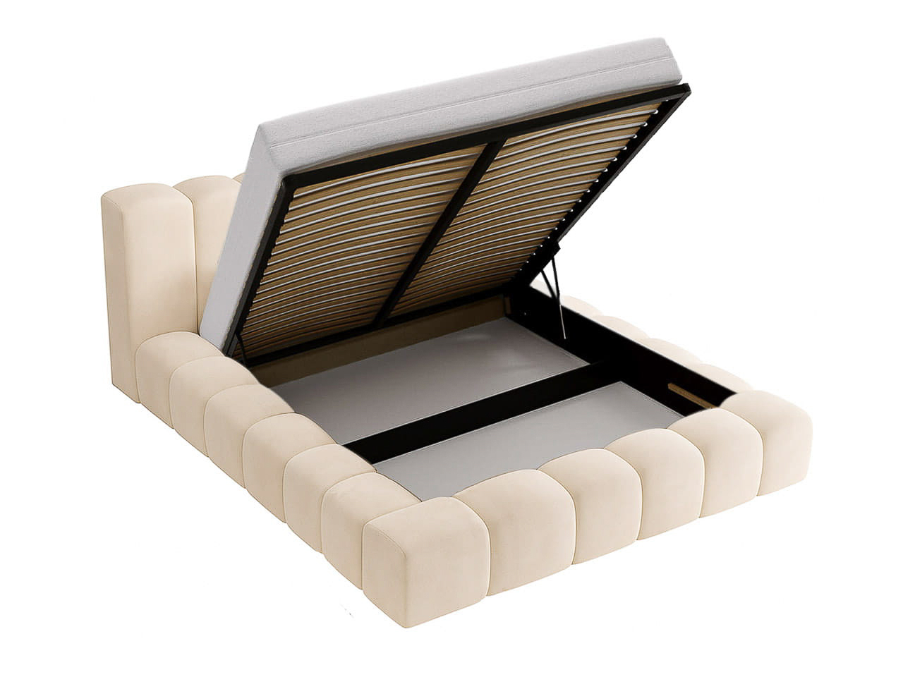 Łóżko tapicerowane 140x200 Calypso kremowe z pojemnikiem na pościel i stelażem metalowym
