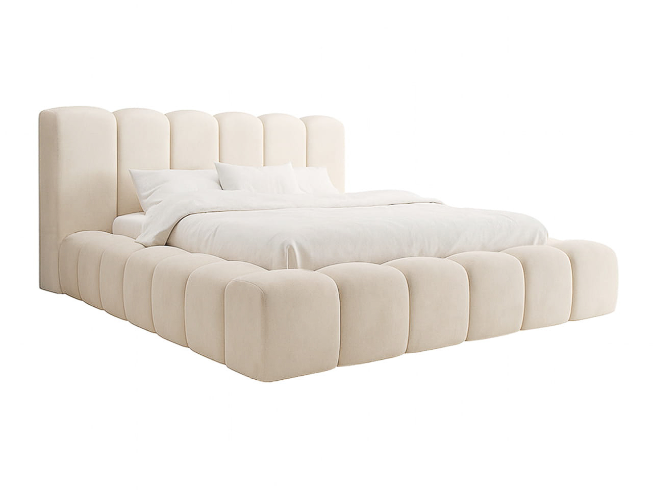 Calypso to kwintesencja potęgi i miękkości w jednym - monumentalny mebel, który od pierwszego wejrzenia staje się centralnym punktem sypialni. Jego obła, wypukła forma i symetryczne bufy przypominają rzeźbę stworzoną z puszystych chmur, gotową otulić Cię luksusem każdej nocy. Zagłówek o grubości 24 cm oraz boki i front o grubości 23 cm tworzą stabilną krawędź, na której możesz swobodnie przysiąść, odłożyć książkę czy tackę z poranną kawą. Dając wybór tym, którzy chcą obecności prawdziwego mebla z charakterem.