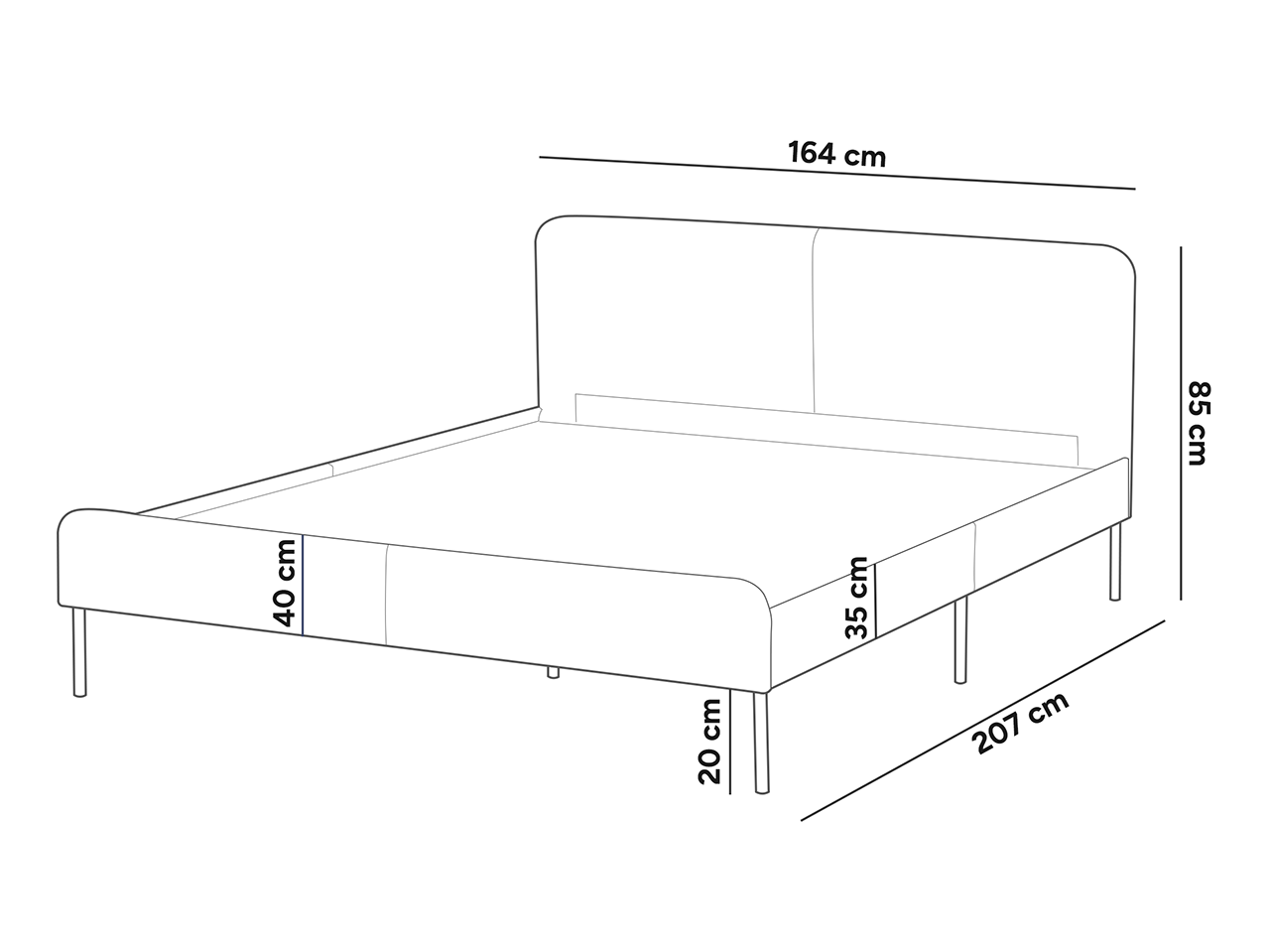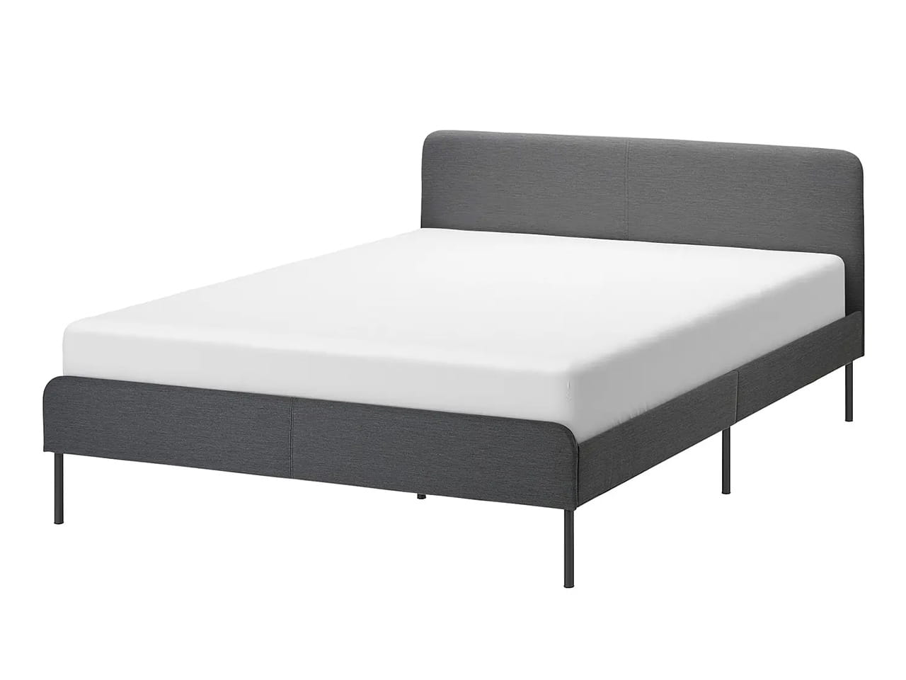 Smukła konstrukcja nie przytłacza pomieszczenia, będąc jednocześnie solidną. Sześć metalowych nóżek w czarnym kolorze dodaje odrobiny loftowego stylu i stanowi stabilną podstawę, a drewniany stelaż elastyczny zadba o przedłużenie trwałości materaca. To wykonanie sprawi, że łóżko Slattum będzie służyć przez długie lata.