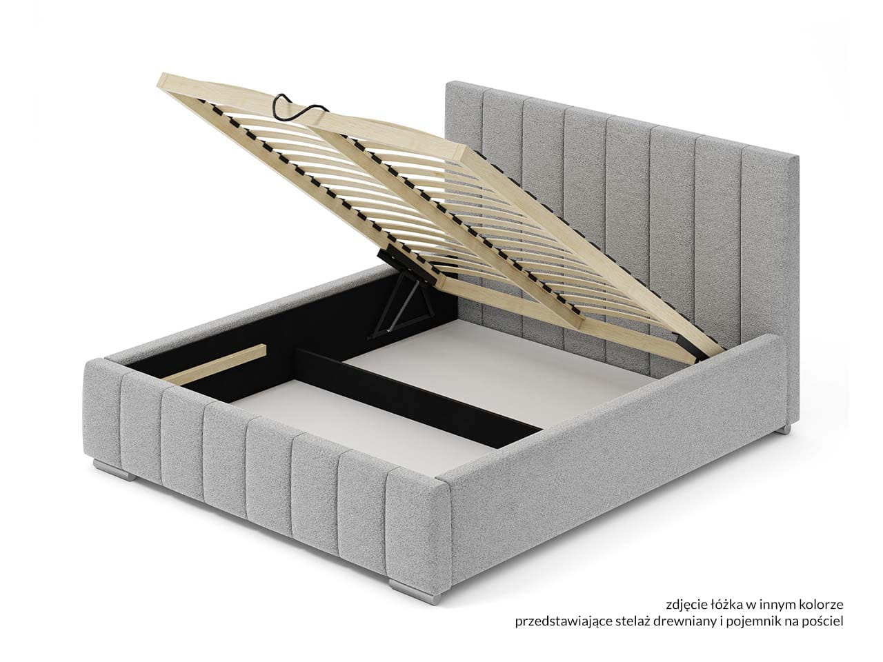 Pianka o grubości 3 cm zapewnia wygodne, pluszowe doznania, a solidne chromowane nóżki zapewniają doskonałe podparcie. Na uwagę zasługuje pojemny schowek pod łóżkiem, idealny do uporządkowania Twojej sypialni. Wnętrze łóżka jest starannie wykończone wigofilem i posiada solidną ramę z drewna brzozowego z 32 listwami, co zapewnia trwałość i wytrzymałość.