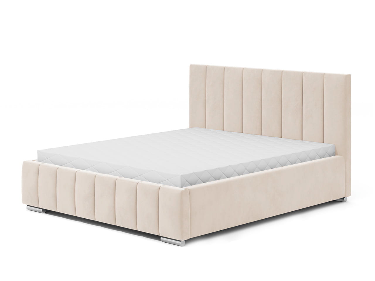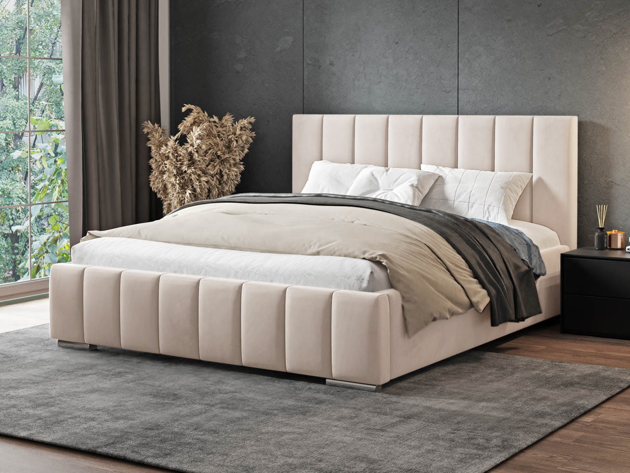 Łóżko tapicerowane 160x200 z pojemnikiem i stelażem Brest beżowe welurowe