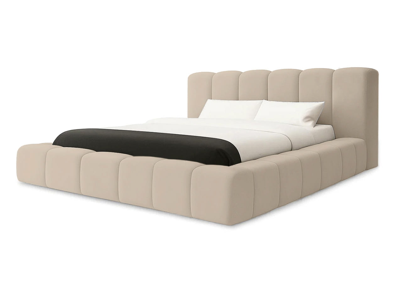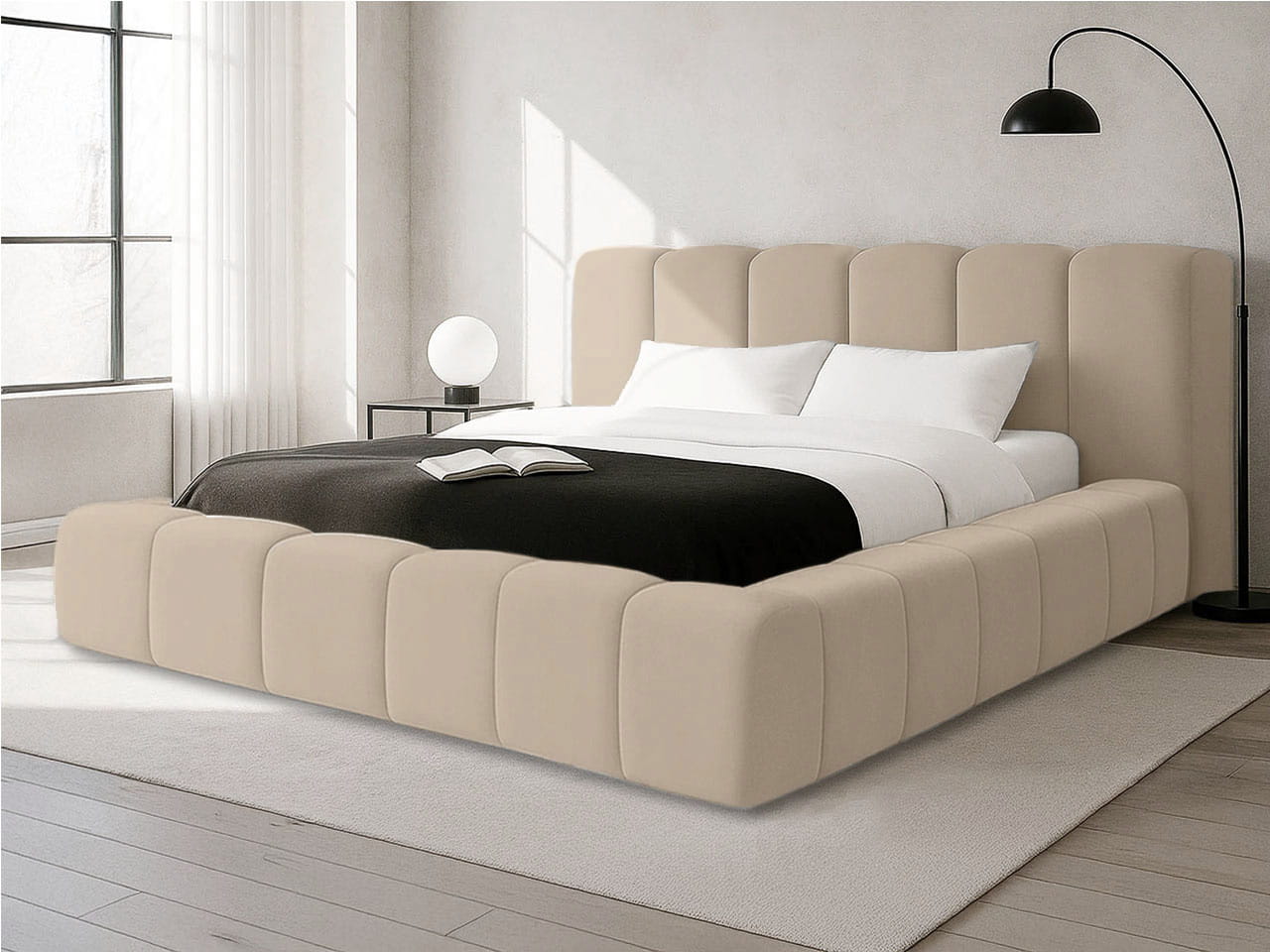 Łóżko tapicerowane 160x200 z pojemnikiem i stelażem metalowym Drako beżowe welurowe