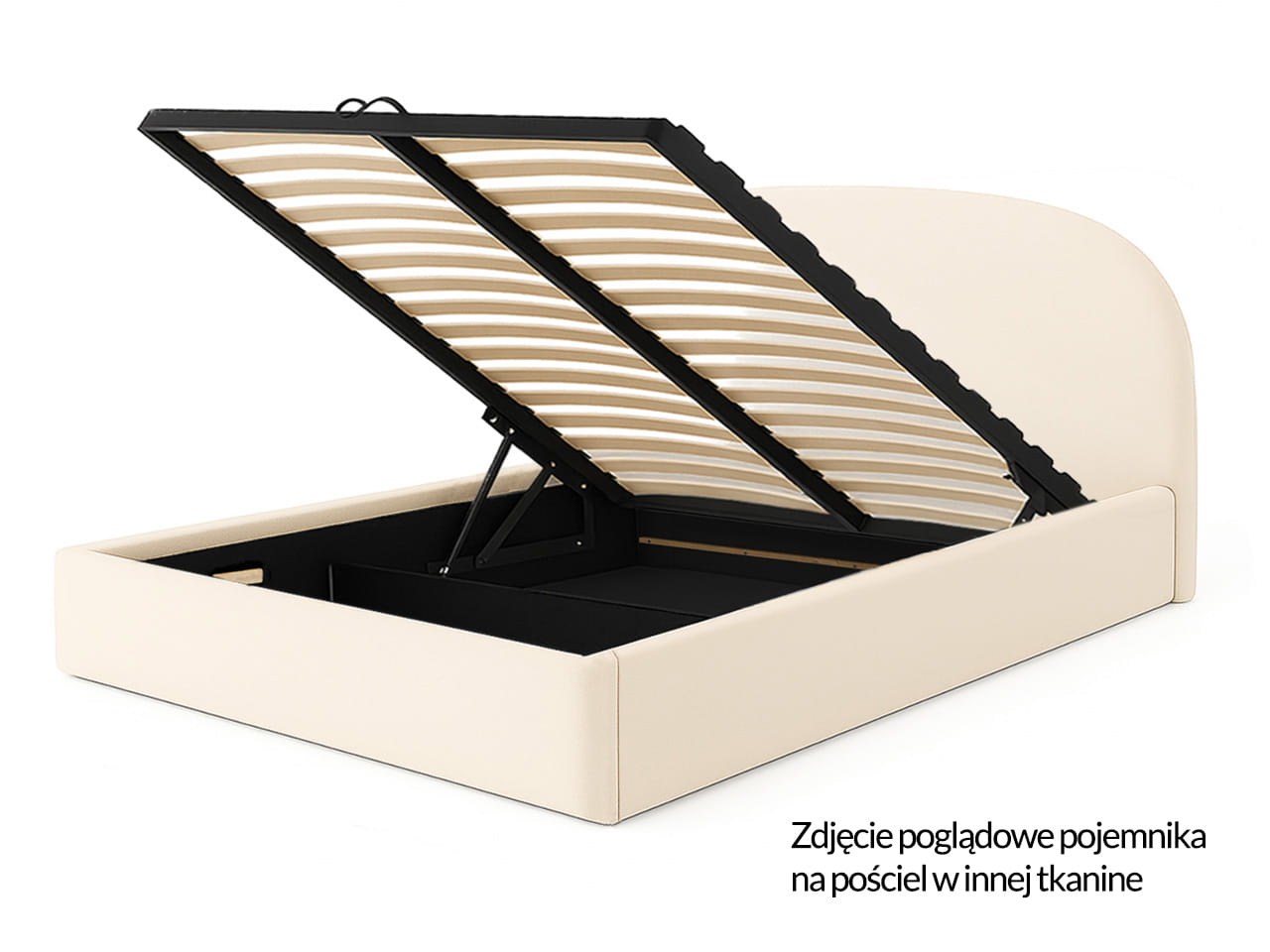 Łóżko tapicerowane 160x200 z pojemnikiem i stelażem metalowym Velia beżowe boucle