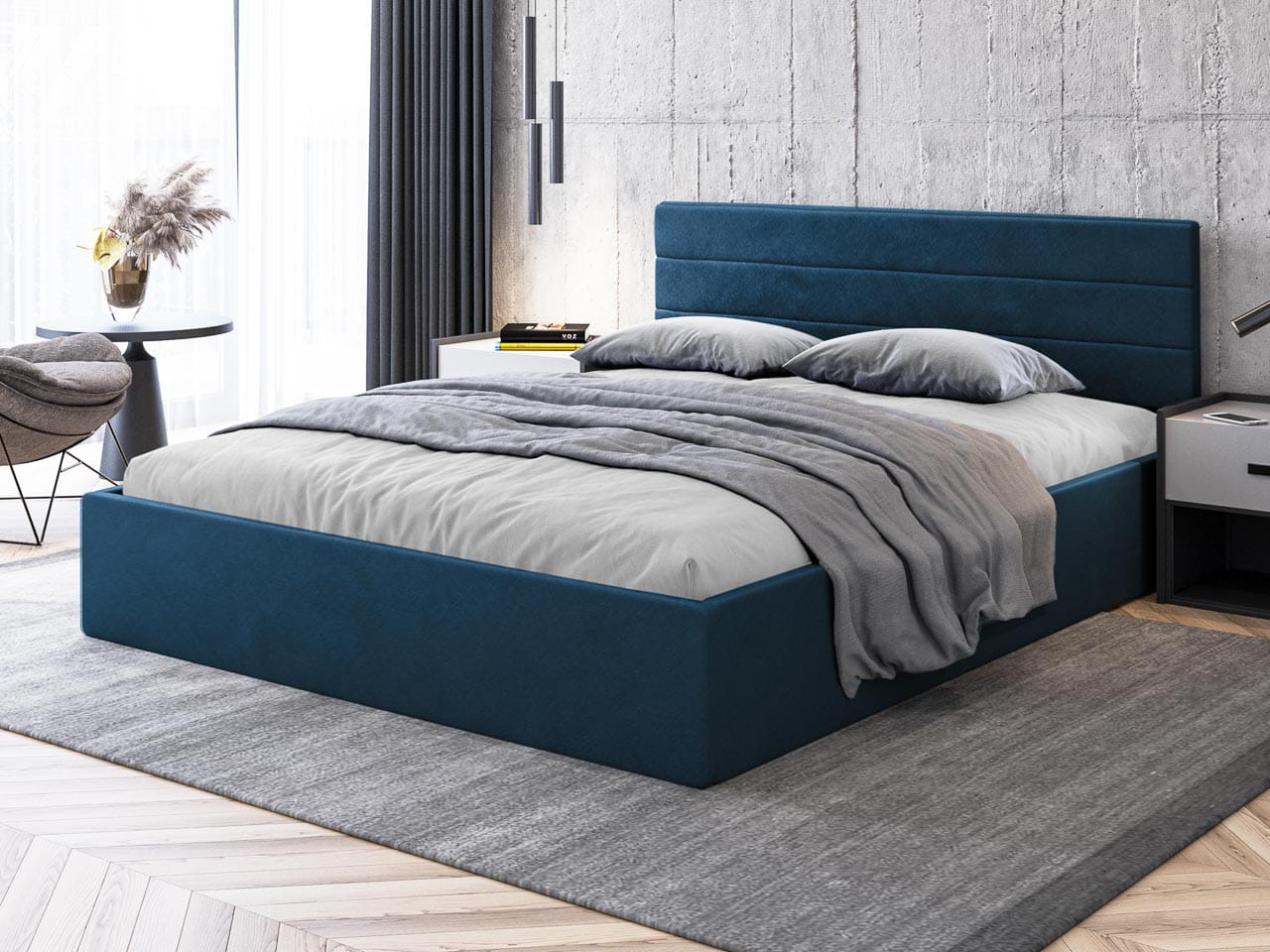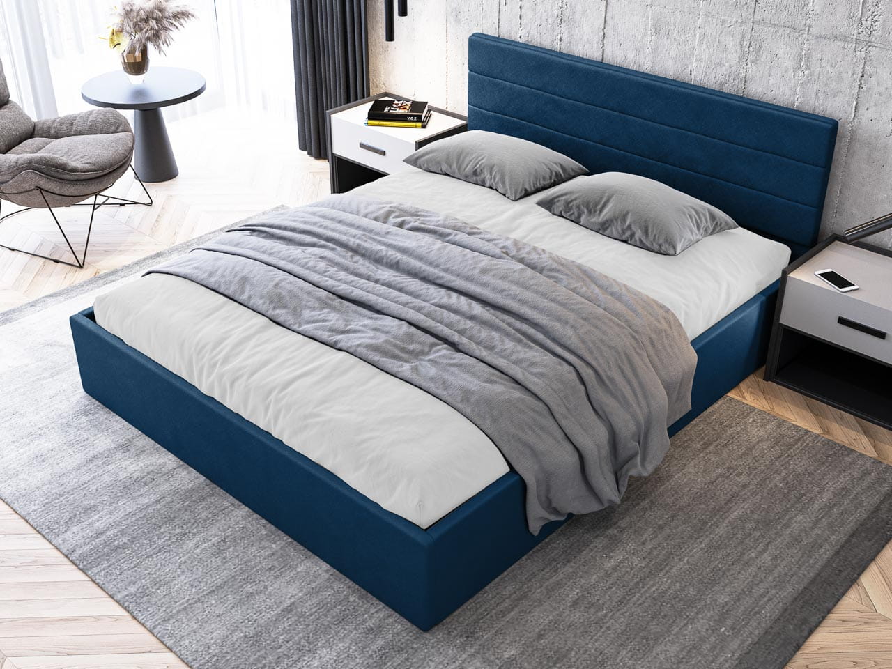 Pionem harmonii w tym projekcie jest pięknie zaprojektowane wezgłowie – przeszycia w poziome pasy nie tylko wzbogacają wizualnie konstrukcję, ale też wprowadzają poczucie ładu i nowoczesnego designu. Wykonane z dbałością o każdy szczegół, wezgłowie staje się nie tylko ozdobą sypialni, lecz także praktycznym oparciem, które idealnie sprawdzi się podczas wieczornego relaksu z książką lub porannej kawy w łóżku. To detal, który łączy funkcję z formą, tworząc zmysłowe dopełnienie wnętrza.