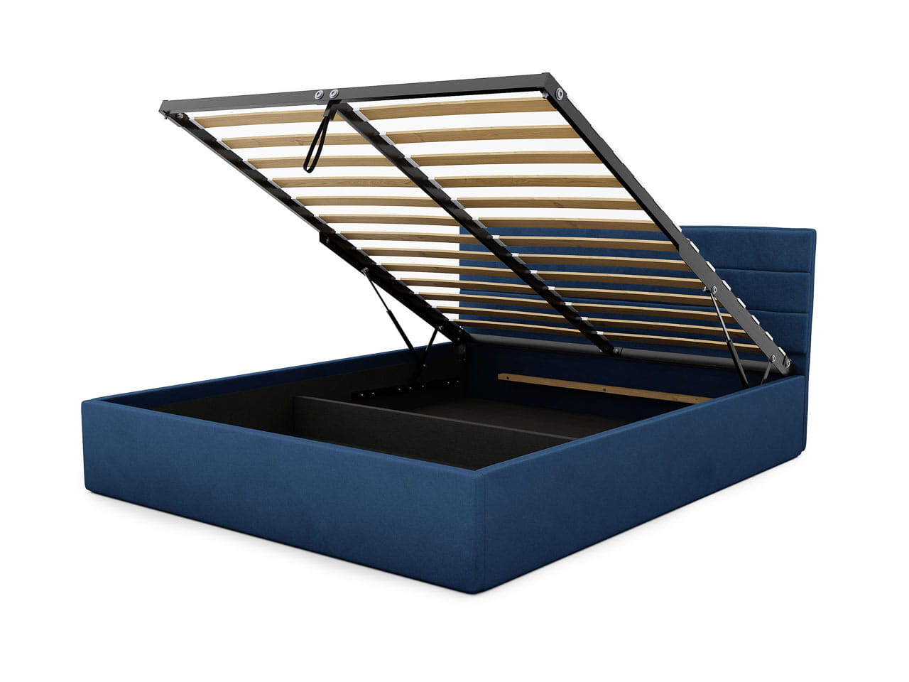 W łóżku Harry zastosowano metalowy stelaż na podnośnikach gazowych, który harmonijnie łączy stabilność z wygodą użytkowania. Otwieranie działa bezszelestnie i z minimalnym wysiłkiem. Każda listwa została osadzona w sposób sprzyjający sprężystości, co pozytywnie wpływa na komfort snu i długowieczność materaca. To przemyślane rozwiązanie, które nie tylko pięknie wspiera konstrukcję łóżka, ale też pozwala na bezproblemowe uniesienie stelaża.