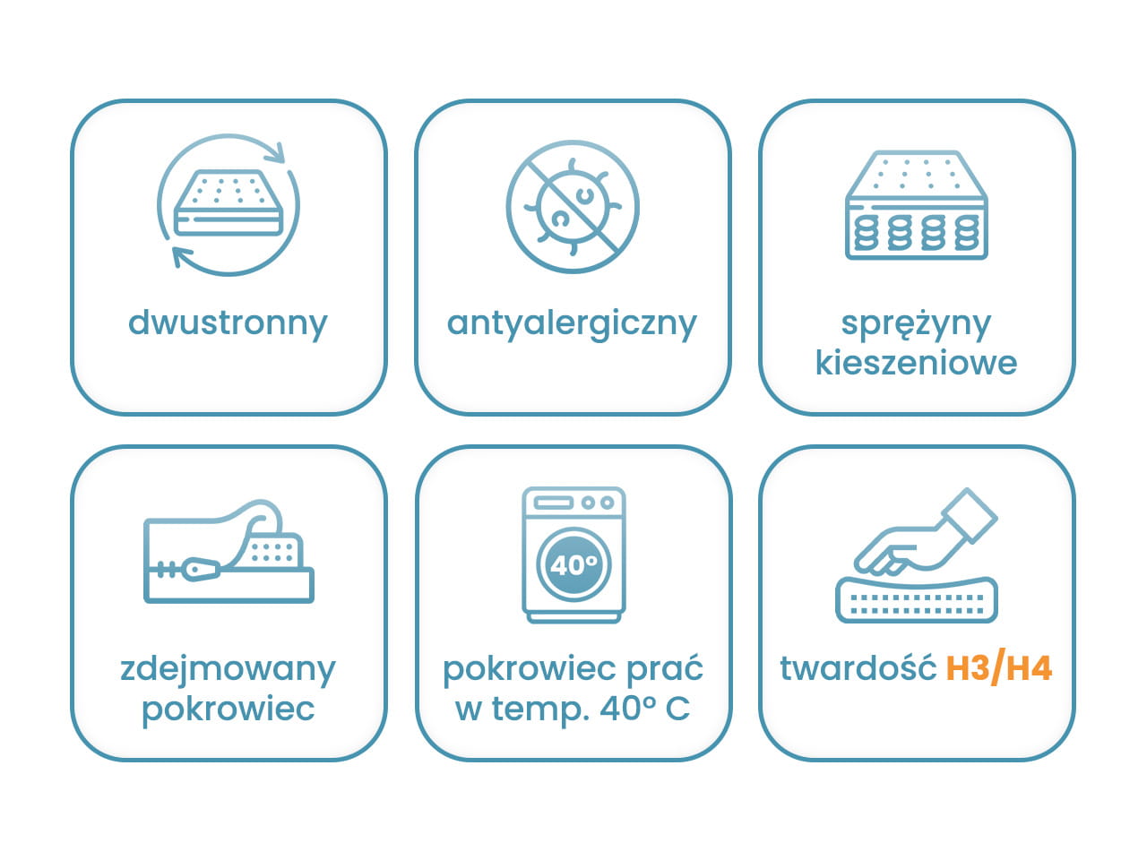 - Dwustronna twardość H3/H4 - większa elastyczność dopasowana do zmieniających się potrzeb.