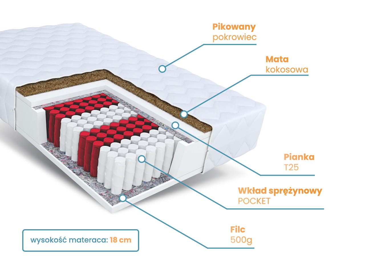| Wysokość materaca | 18 cm |
