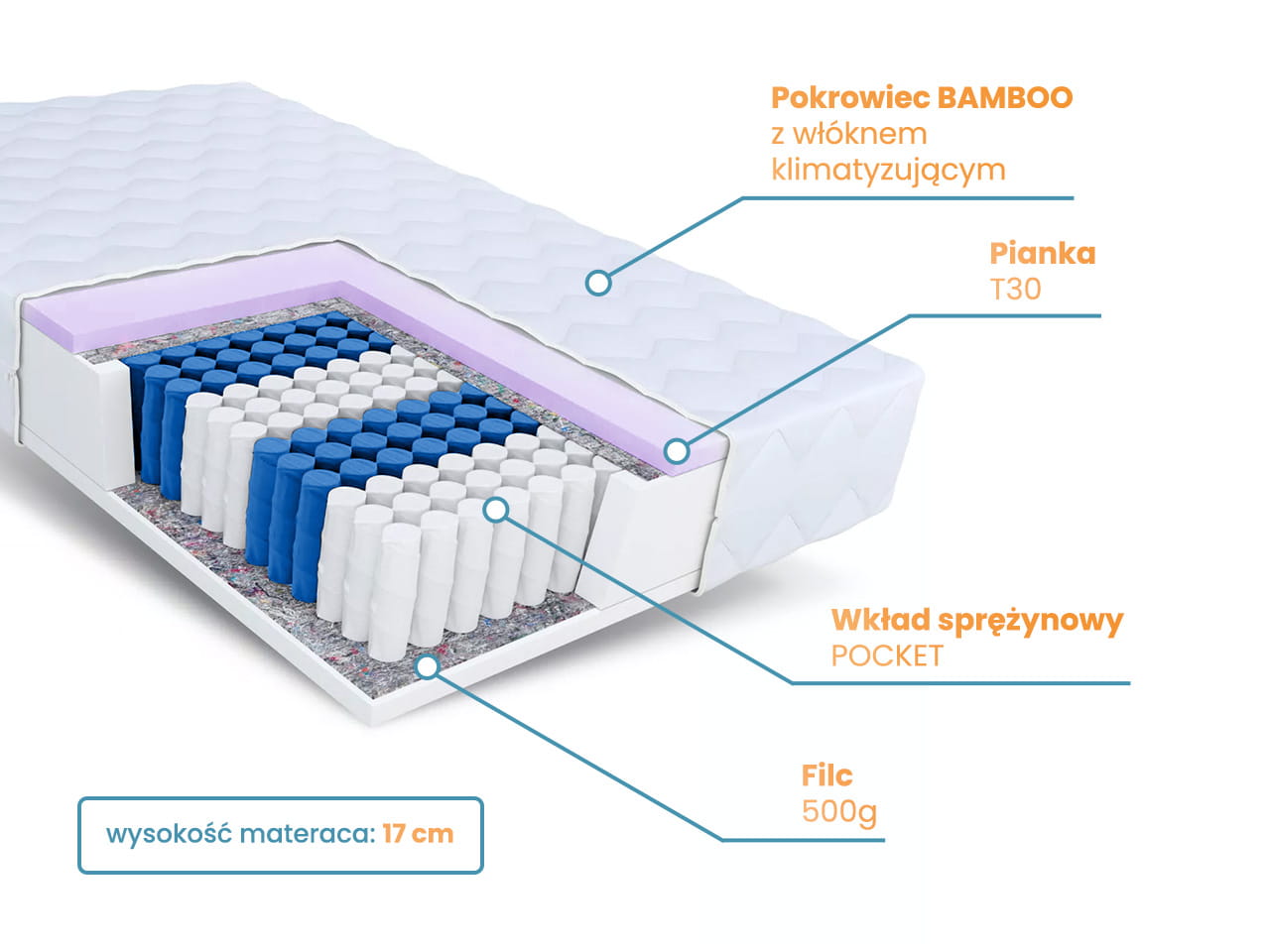 | Wysokość materaca | 17 cm |