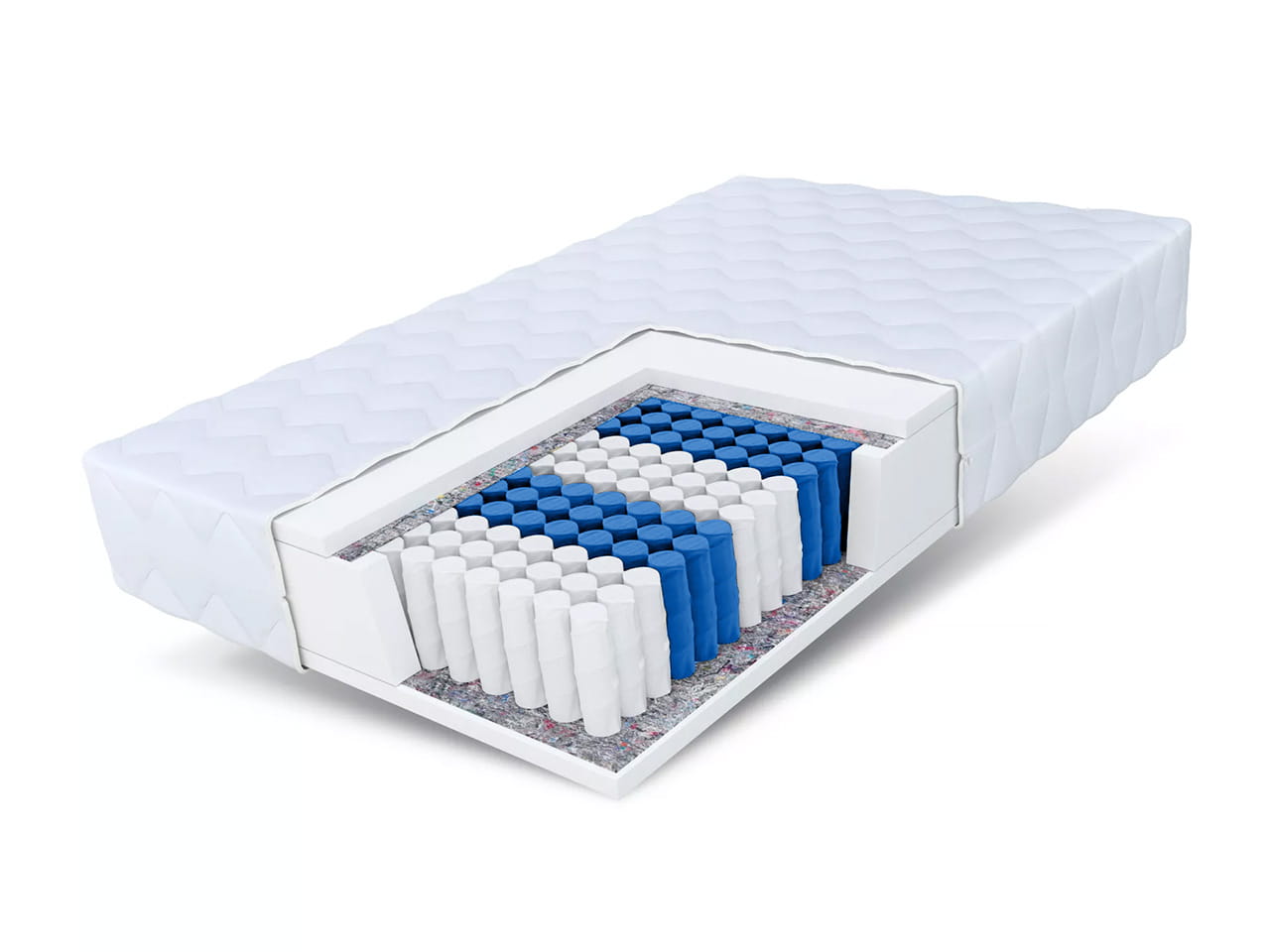- Sprężyny kieszeniowe - każda pracuje niezależnie, co minimalizuje przenoszenie ruchów partnera i wspiera naturalne ułożenie sylwetki. Dzięki temu sen staje się spokojniejszy, a kręgosłup ma zapewnione optymalne podparcie przez całą noc.