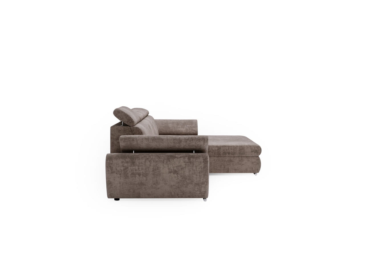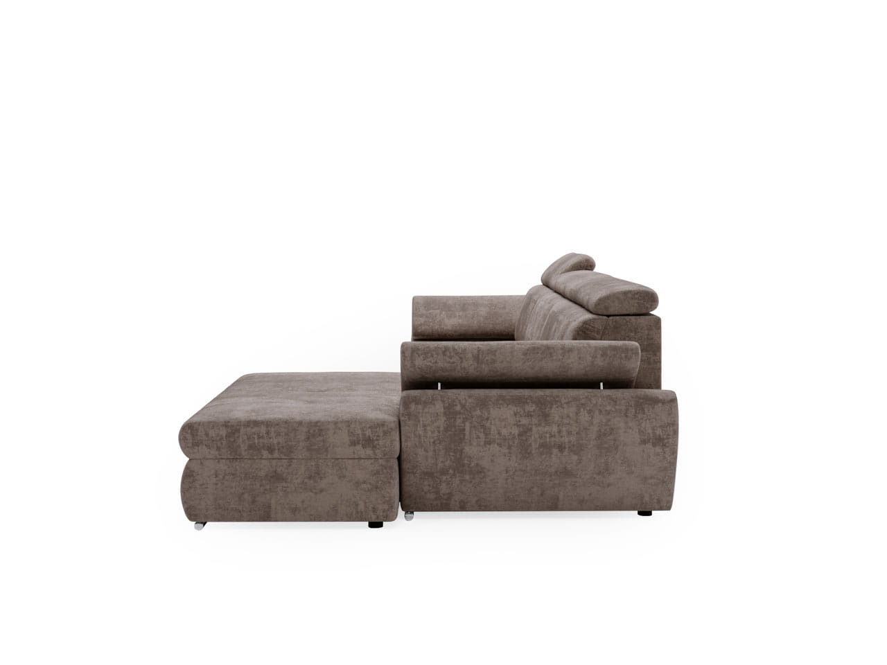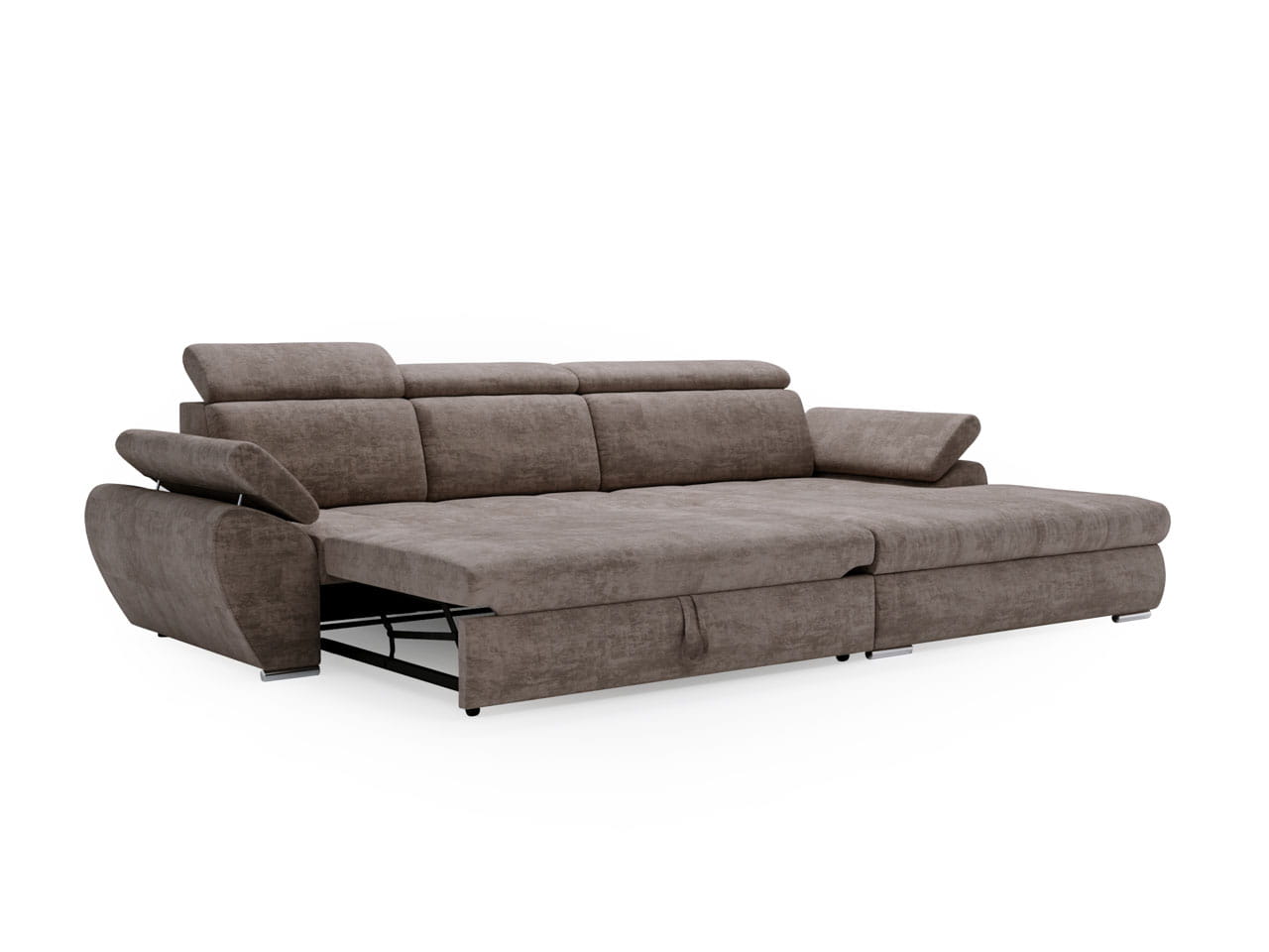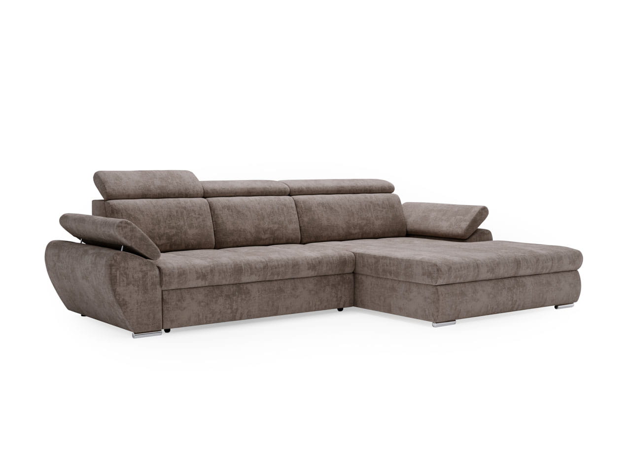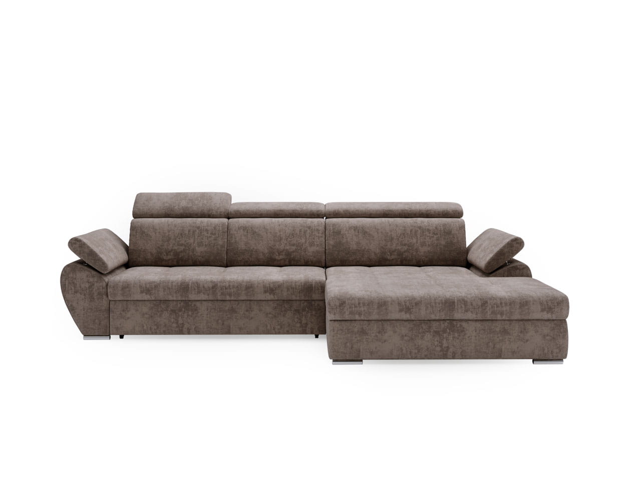 Narożnik z funkcją spania L-kształtny Sydney brązowy z regulowanymi zagłówkami prawostronny