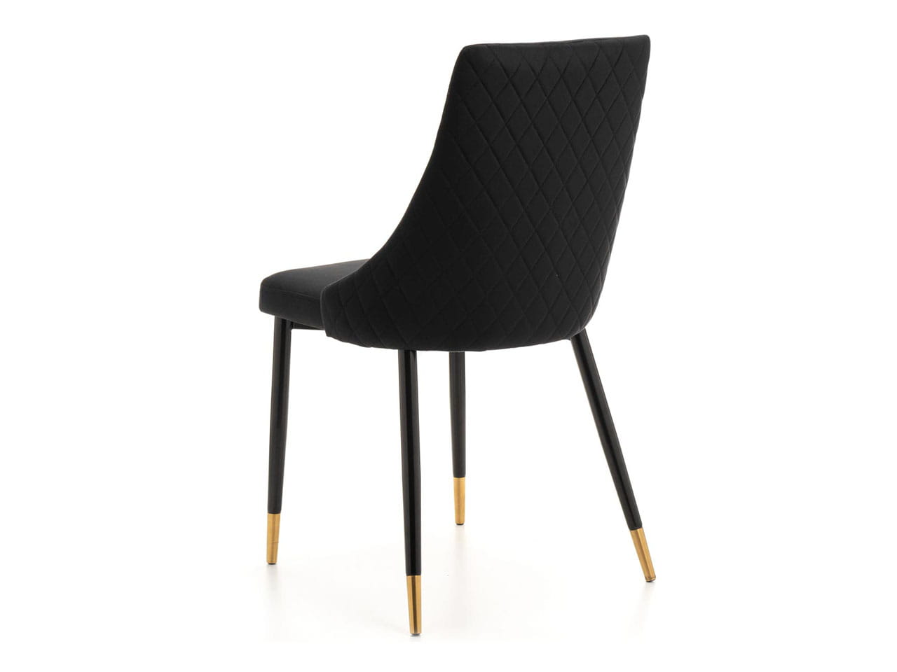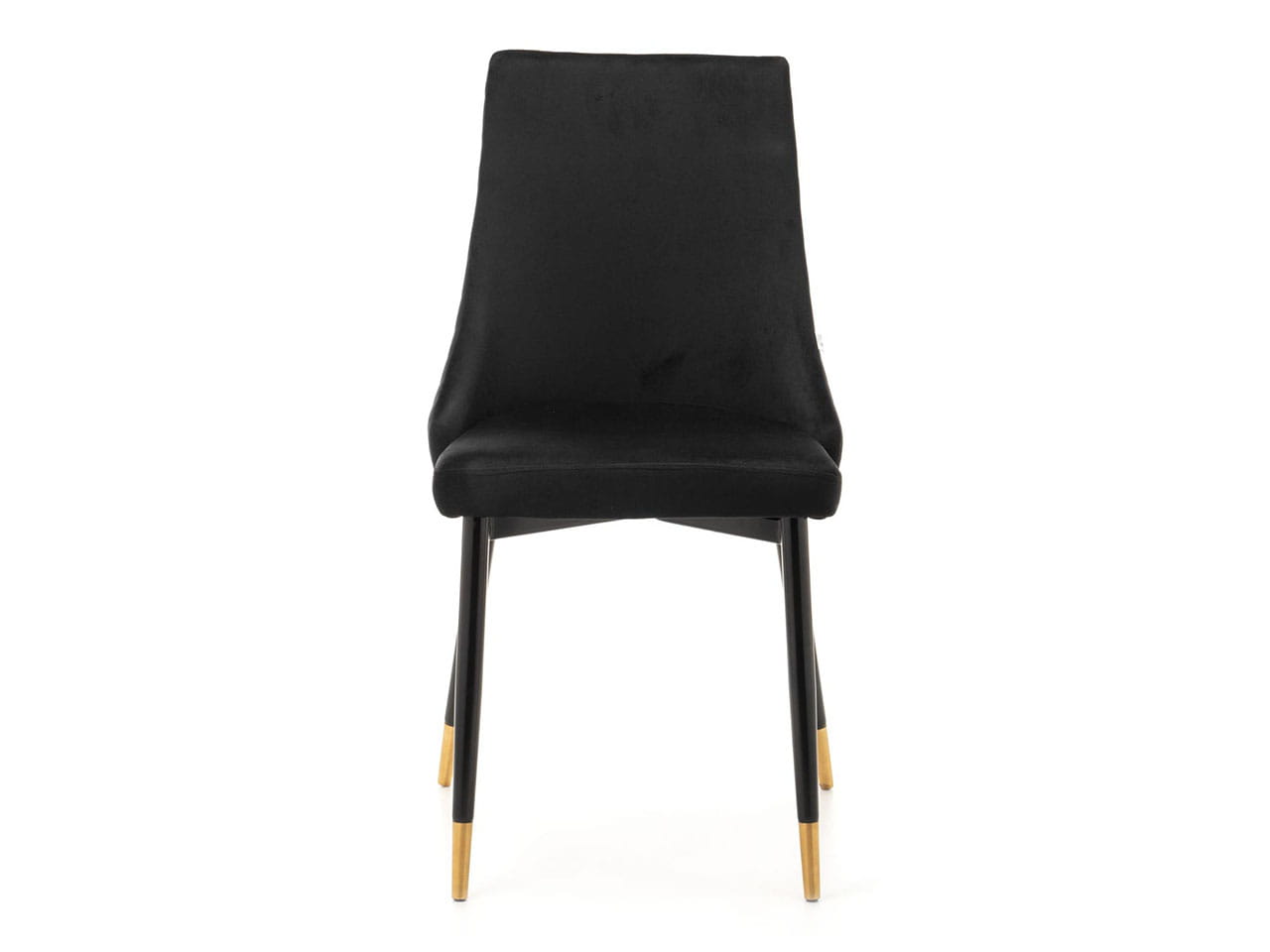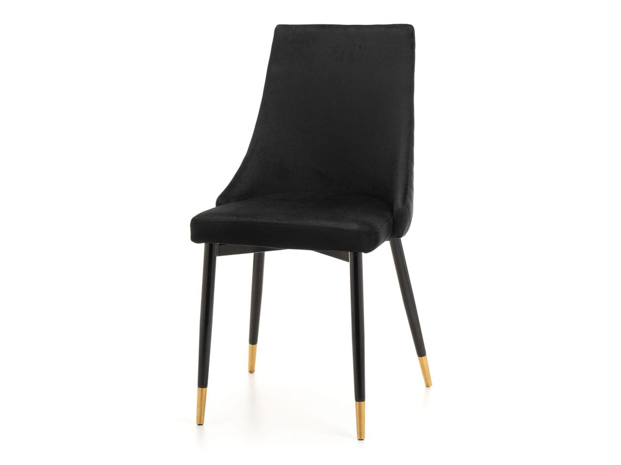 Solidne metalowe nogi tworzą stabilną podstawę. Pomalowane na czarno i wzbogacone o złote końcówki nadają wyróżniającego się charakteru, a w połączeniu z niebanalnym siedziskiem tworzą elegancki projekt krzesła.