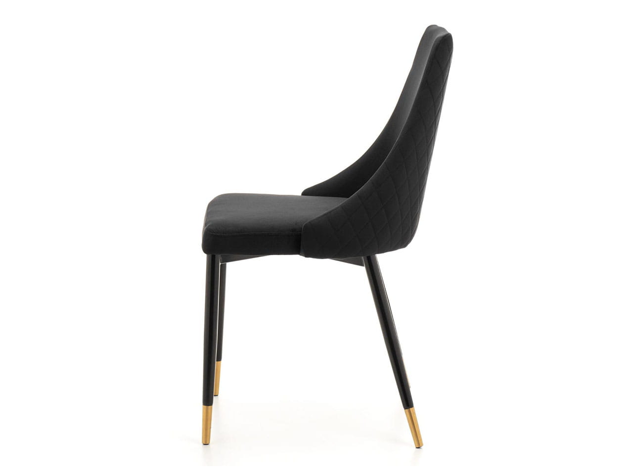 Za komfort modelu krzesła Adda odpowiada miękka pianka na siedzisku i welurowe obicie w czarnym kolorze, sprawiając, że użytkowanie stanie się codzienną przyjemnością. Ekskluzywny welur na tylnej stronie oparcia został starannie przeszyty, tworząc subtelne kształty rombów i dodając wyjątkowego szyku.