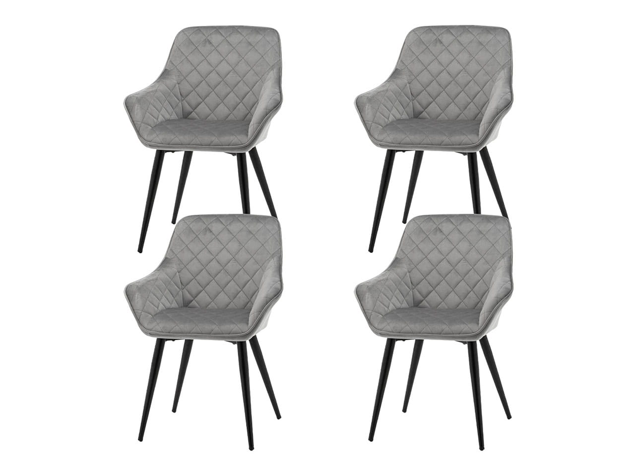 Zestaw 4 krzeseł tapicerowanych TM01 w jasnoszarym welurze na czarnych nogach
