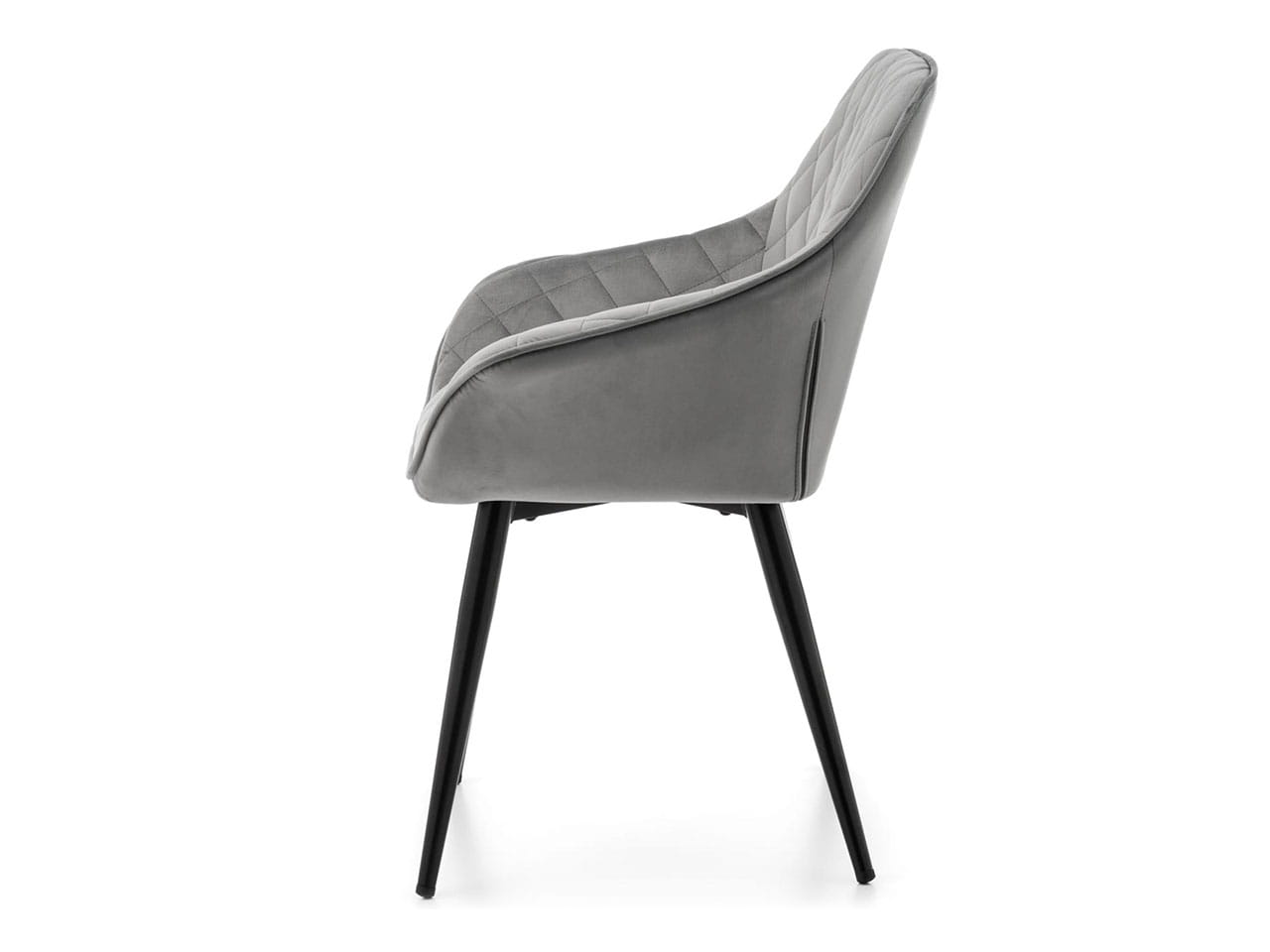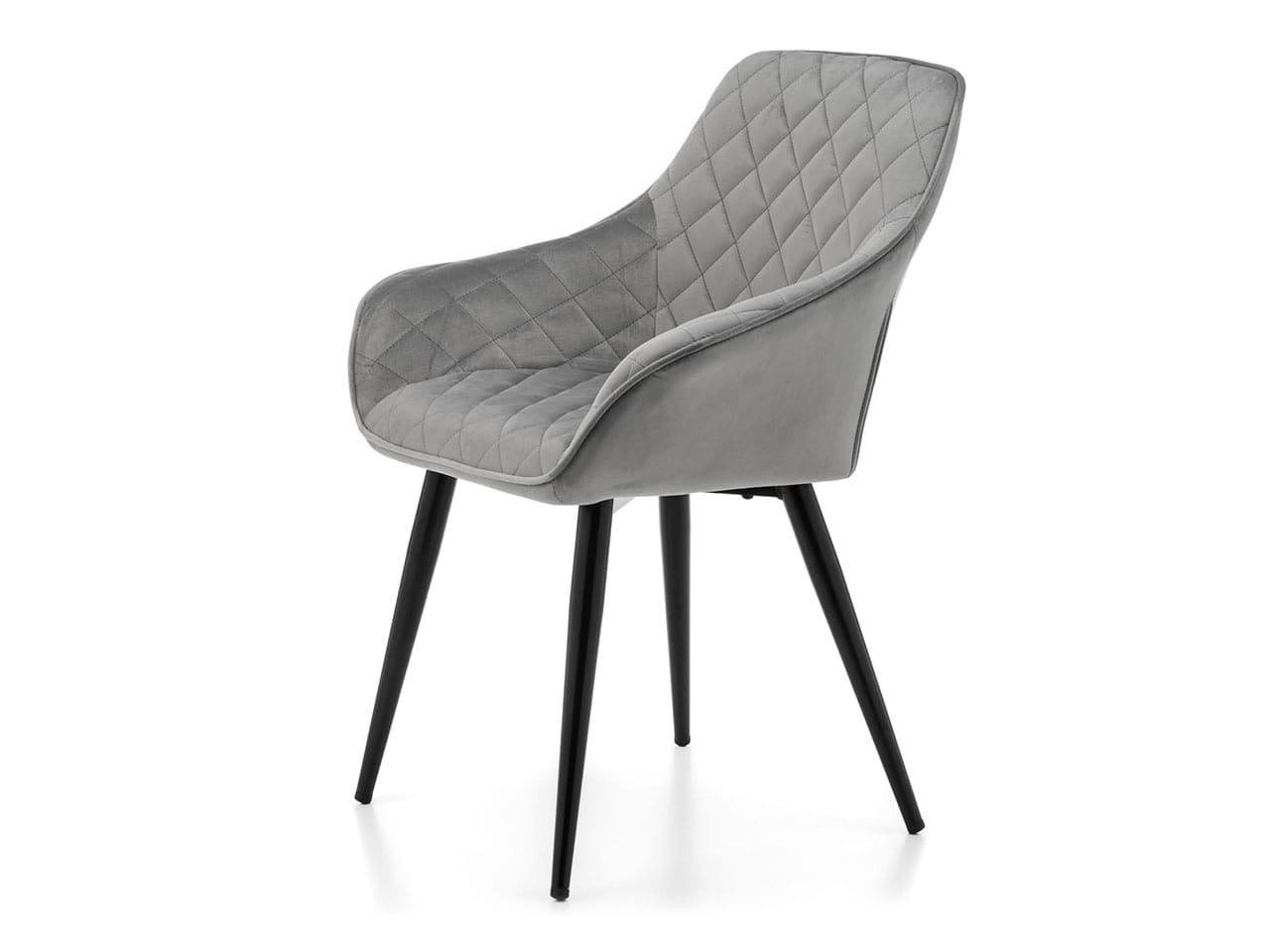 Model TM01 został obity szykownym welurem w jasnoszarym kolorze. Na całej tapicerce znajdują się stylowe pikowania w kształcie rombów, a całość dopełniają stabilne, metalowe nogi malowane proszkowo w czarnym kolorze. Dzięki temu ten funkcjonalny mebel estetycznie przyciągnie uwagę.