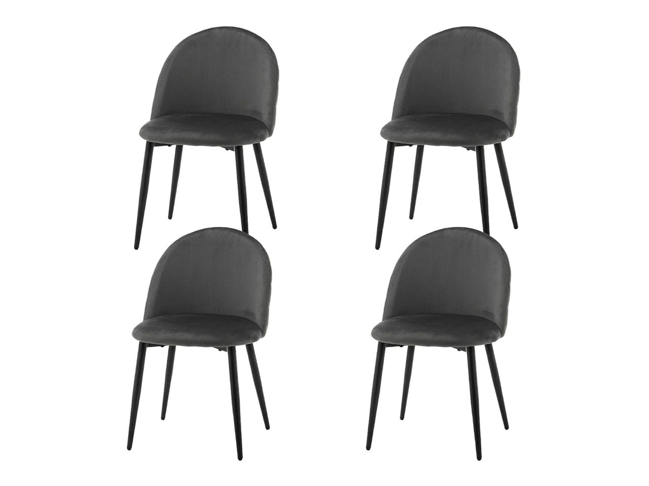 Zestaw 4 krzeseł tapicerowanych TM92 w szarym welurze na czarnych nogach