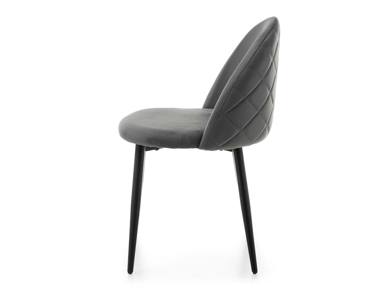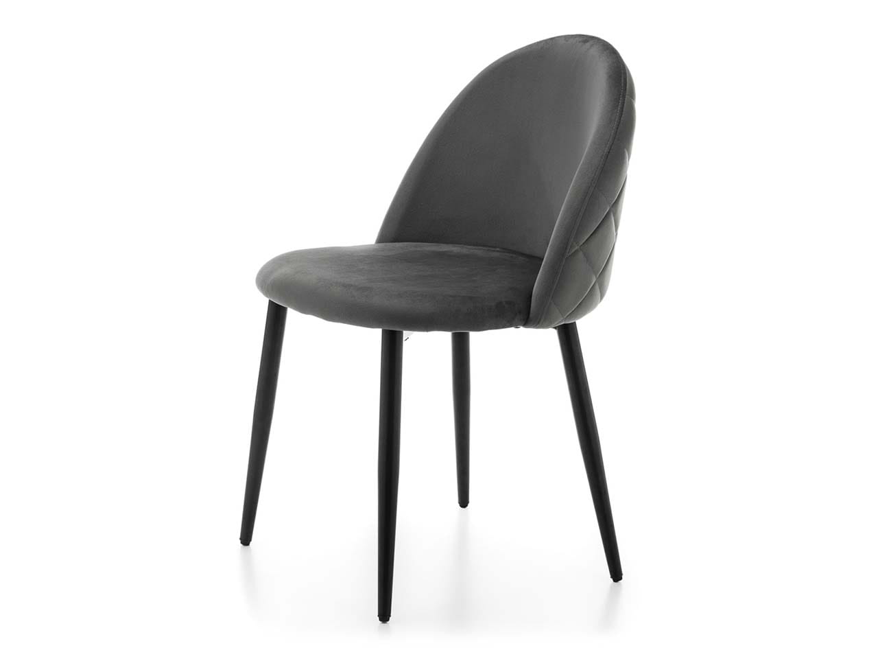 Kluczową rolę w kreowaniu charakteru modelu krzesła TM92 odgrywa zaokrąglony korpus obity eleganckim welurem o szarym kolorze oraz urokliwe wzory małych rombów na tyle oparcia, stworzone za pomocą przeszyć delikatną, szarą nitką. Ten estetyczny zabieg sprawia, że wygodne siedzisko do spędzania na nim nawet długich godzin staję się tak niepowtarzalne, łącząc w sobie komfort i wyrafinowanie.